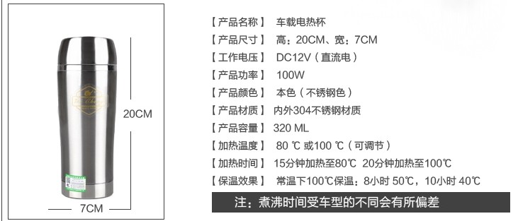 车载电热杯 汽车加热杯 双层不锈钢真空保温杯 积分兑换-400分